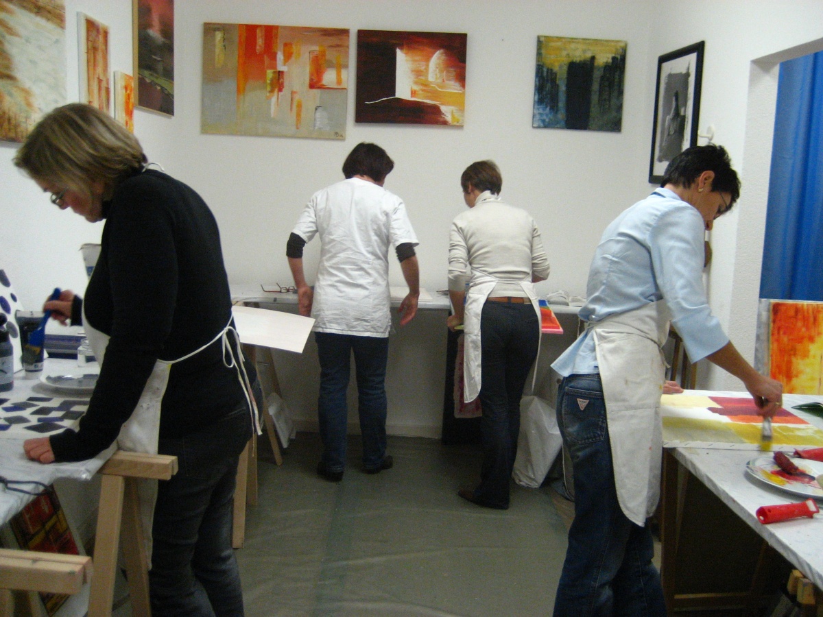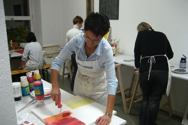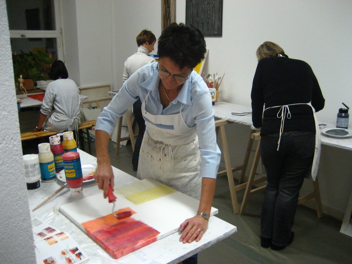 Seit einigen Jahren besitze ich ein Atelier, wo ich mit Gleichgesinnten male und arbeite. Gemalt wird mit Acrylfarbe unterstützt durch Effekt- und Strukturpaste, Oel- und Pastelllreiden sowie Kohle und individuelle Materialien