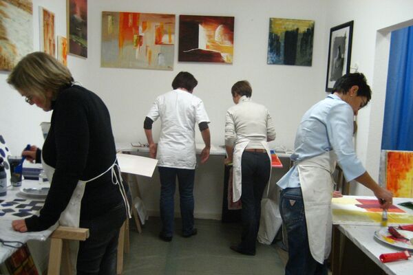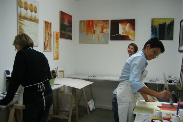 Seit einigen Jahren besitze ich ein Atelier, wo ich mit Gleichgesinnten male und arbeite. Gemalt wird mit Acrylfarbe unterstützt durch Effekt- und Strukturpaste, Oel- und Pastelllreiden sowie Kohle und individuelle Materialien